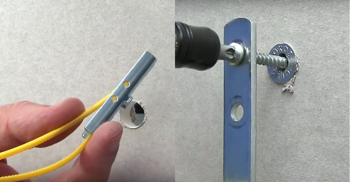 Wie der Name verrät werden die Kipp- oder Klappdübel umgeklappt bzw. zusammengefaltet, um sie durch das Bohrloch zu führen und entfalten sich im Hohlraum bzw. hinter der Platte selbsttätig.
