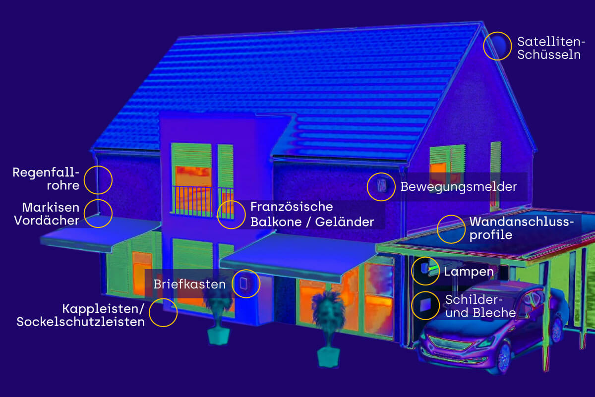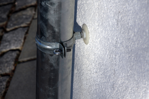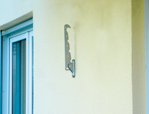 Um schwere Lasten wie Markeisen oder Vordächer an WDVS-gedämmten Häusern anzubringen, werden dagegen Abstandsmontagesysteme genutzt, die die Dämmung überbrücken und sicher im Mauerwerk verankern.