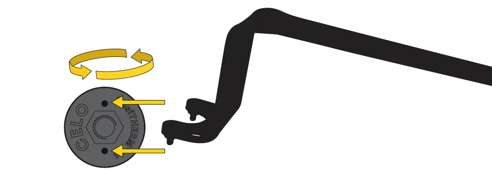b) Das thermische Trennmodul darf max. 3 mm (das entspricht 1 ½ Umdrehungen) herausgeschraubt werden. Dabei den Zweilochmutterndreher (Art.-Nr. 155253AMT) verwenden, um das schwarze Trennmodul max. 1 ½ Umdrehungen herauszudrehen. Entsteht dabei ein Spalt, für die Abdichtung einen geeigneten Dichtstoff (z.B. StickFX XP) einsetzen.