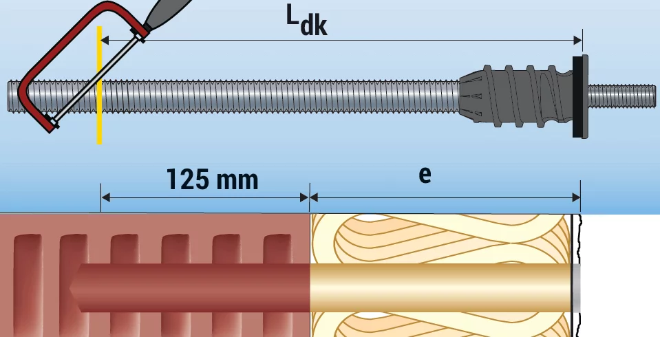 Die Länge Ldk von der Spitze der Gewindestange bis Unterkante der Abdeckscheibe des thermischen Trennmoduls ermitteln: