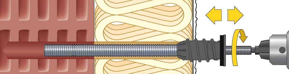 Hinweis: Das thermische Trennmodul bohrt sich selbstständig durch die Dämmung. Der geschäumte EPDM-Dichtring sorgt für eine optimale Abdichtung und verhindert das Eintreten von Schlagregen in die Dämmung (eine zusätzliche Abdichtung mit z.B. Acryl ist nicht nötig, es sei denn, der Putz ist sehr rau).
