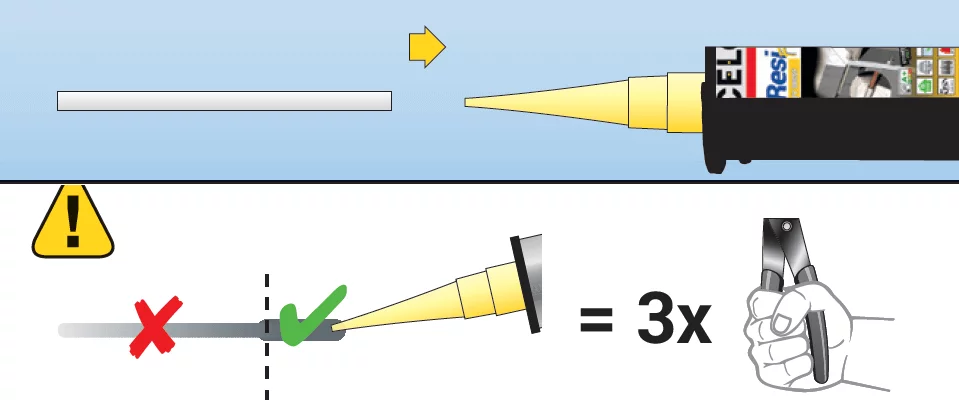 Die Mischdüsenverlängerung MDV auf die Mischdüse des Injektionsmörtels ResiFIX VY SF stecken.