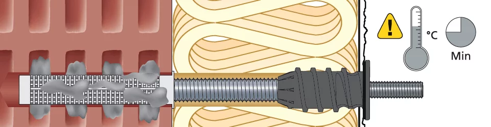 Bei einer Temperatur des Untergrunds von -5°C beträgt die Mindest-Aushärtezeit beispielsweise 14 Stunden, bei +20°C nur 45 Minuten. Die Temperatur der Kartusche muss mindestens +15 °C betragen.