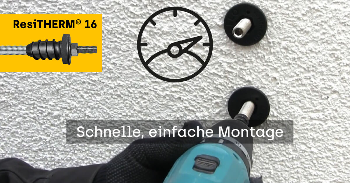 Welchen Vorteil bietet Ihnen ResiTHERM® 16 bei der Schwerlastbefestigung an gedämmten Fassaden? Mit anschaulichen Montagevideos und Übersicht der Sets und Zubehörteile!