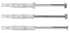 Des Weiteren unterscheiden sich Rahmendübel nicht nur in Dübel- und Schraubenausführung, sondern auch in Material (Stahl oder Edelstahl) und Verzinkung (Stahl verzinkt, Stahl feuerverzinkt) der beigelegten oder für eine schnelle Montage vormontierten Schraube.