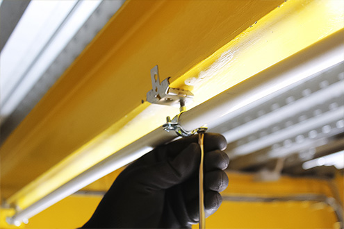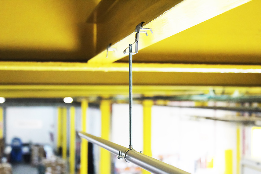 Für diese schnelle Befestigungsmethode am Stahlträger werden die stabilen Trägerklemmen aus Federstahl einfach auf den Flansch gehämmert