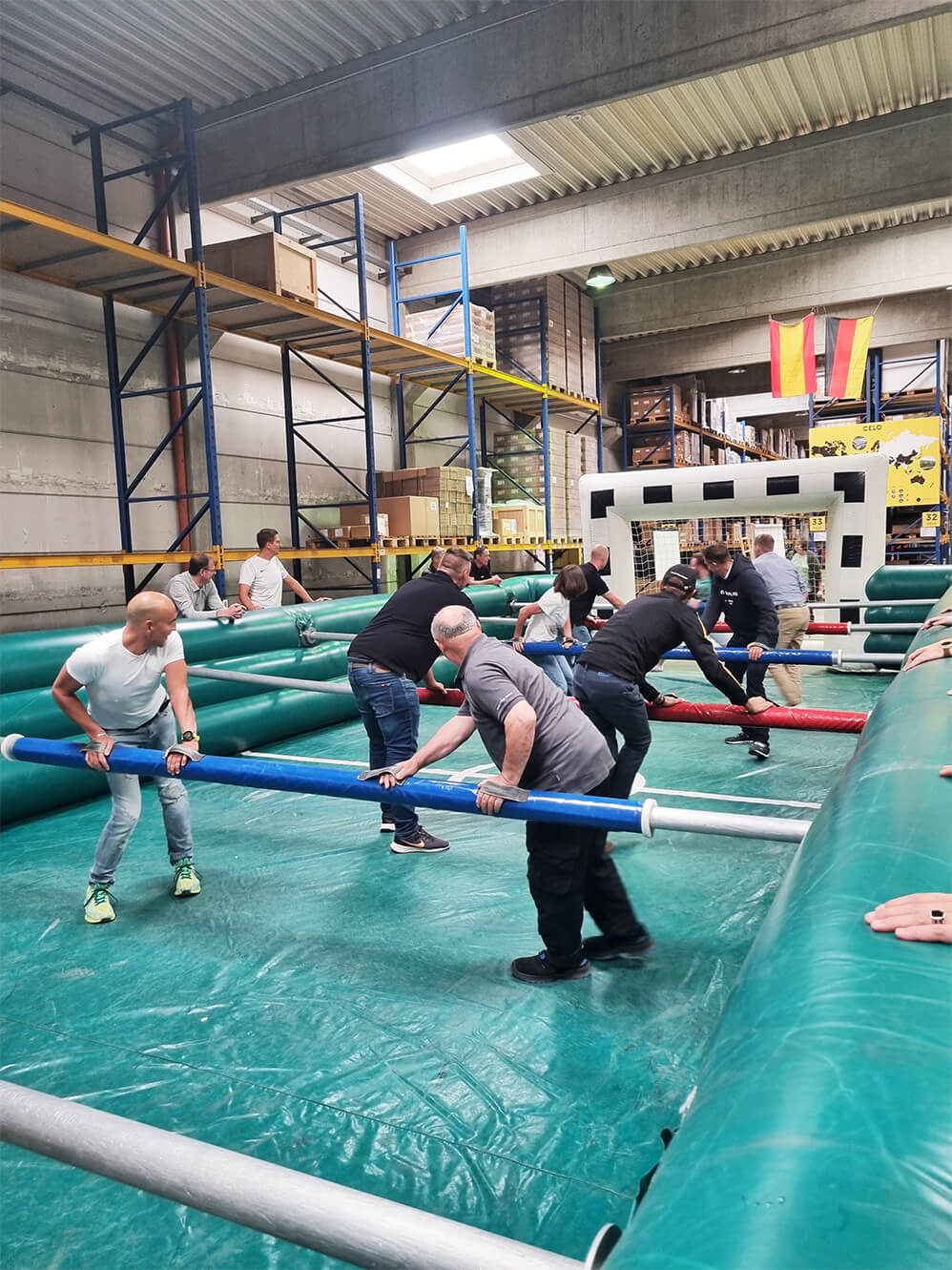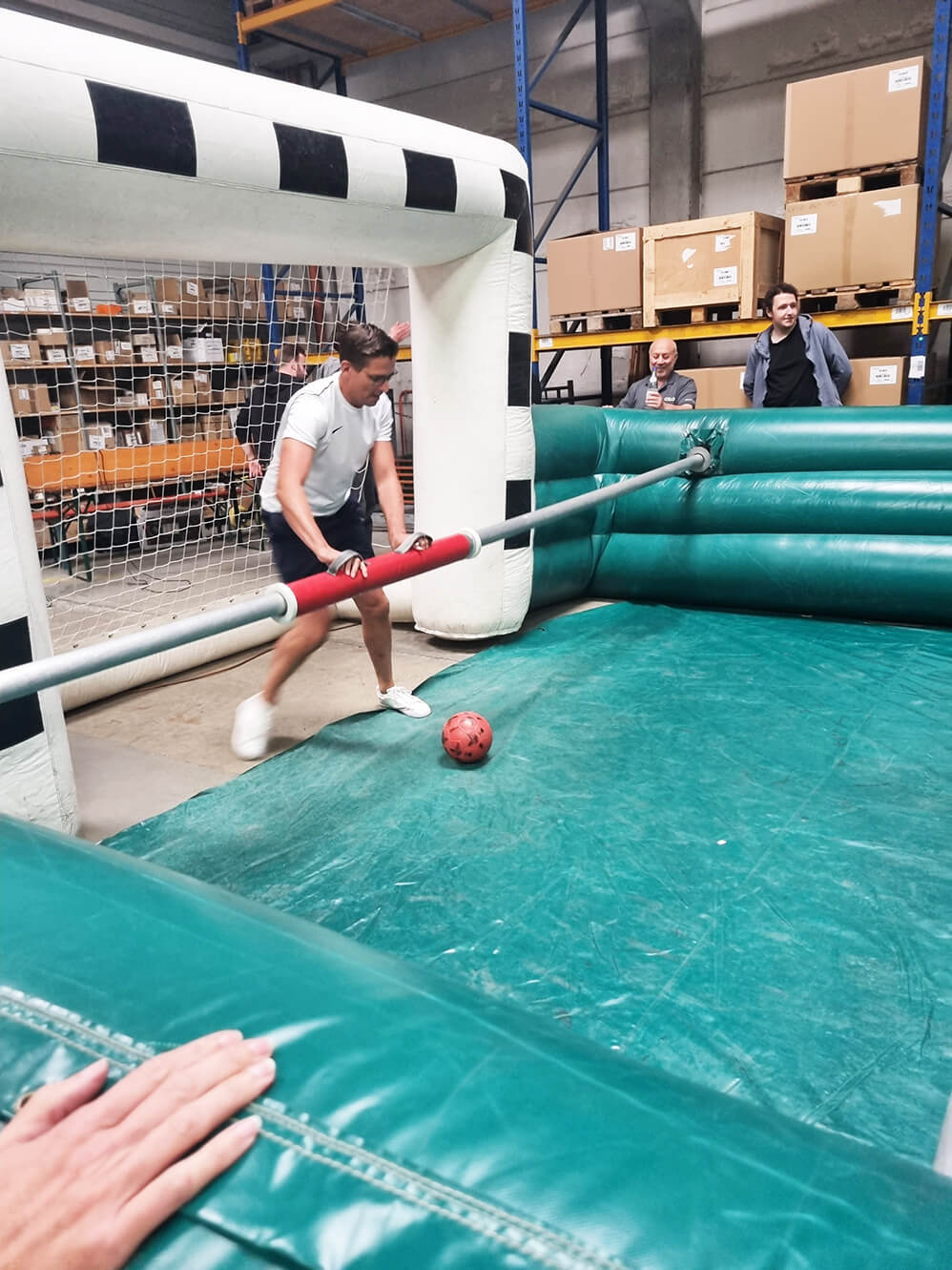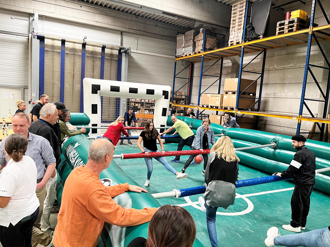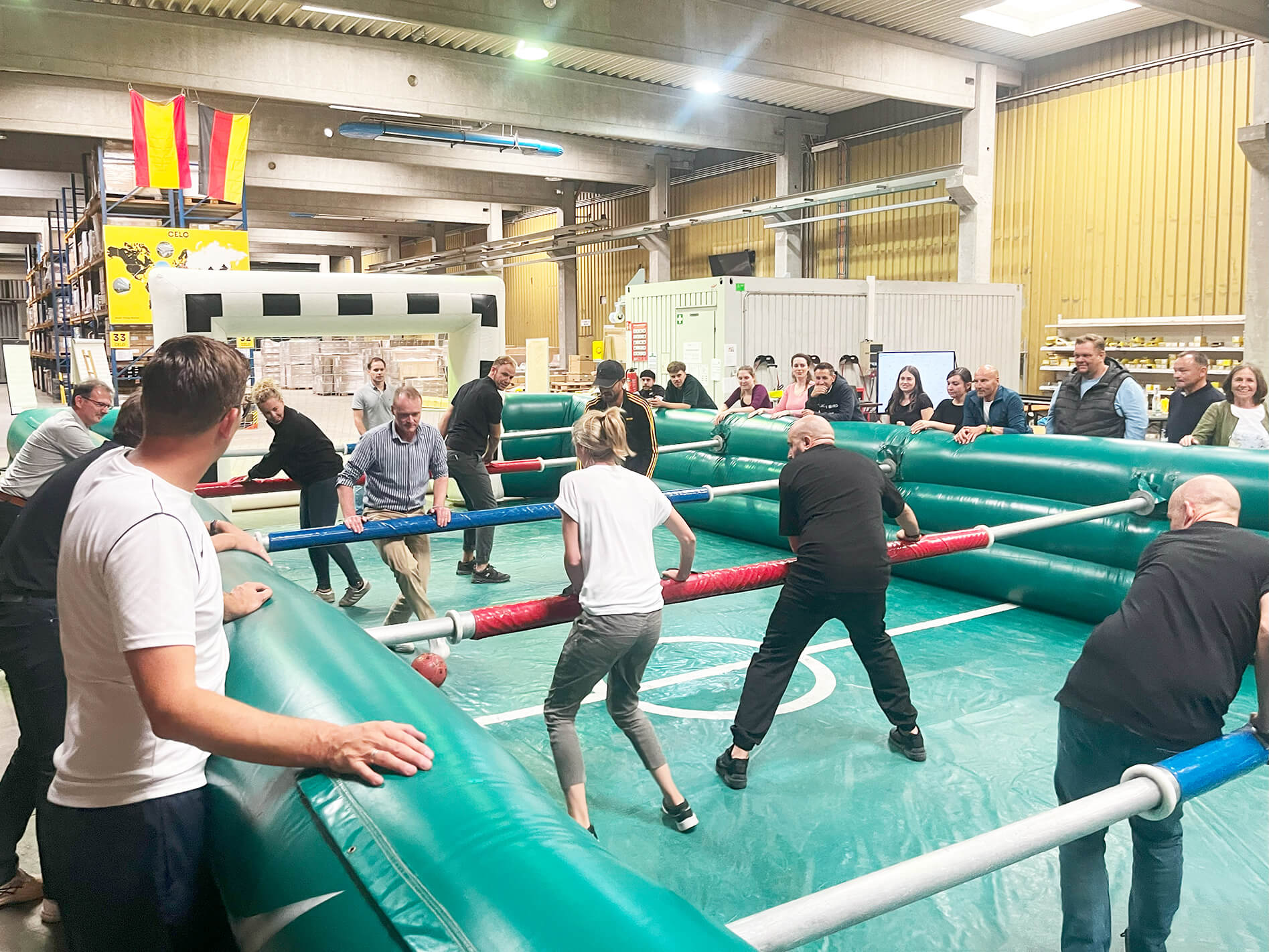 Nach einer herzlichen Begrüßung durch unseren Geschäftsführer Makro Römpp und einer leckeren Stärkung zur Mittagszeit, war es dann auch schon Zeit für das erste Highlight des Tages: das heiß erwartete Menschenkicker-Turnier!