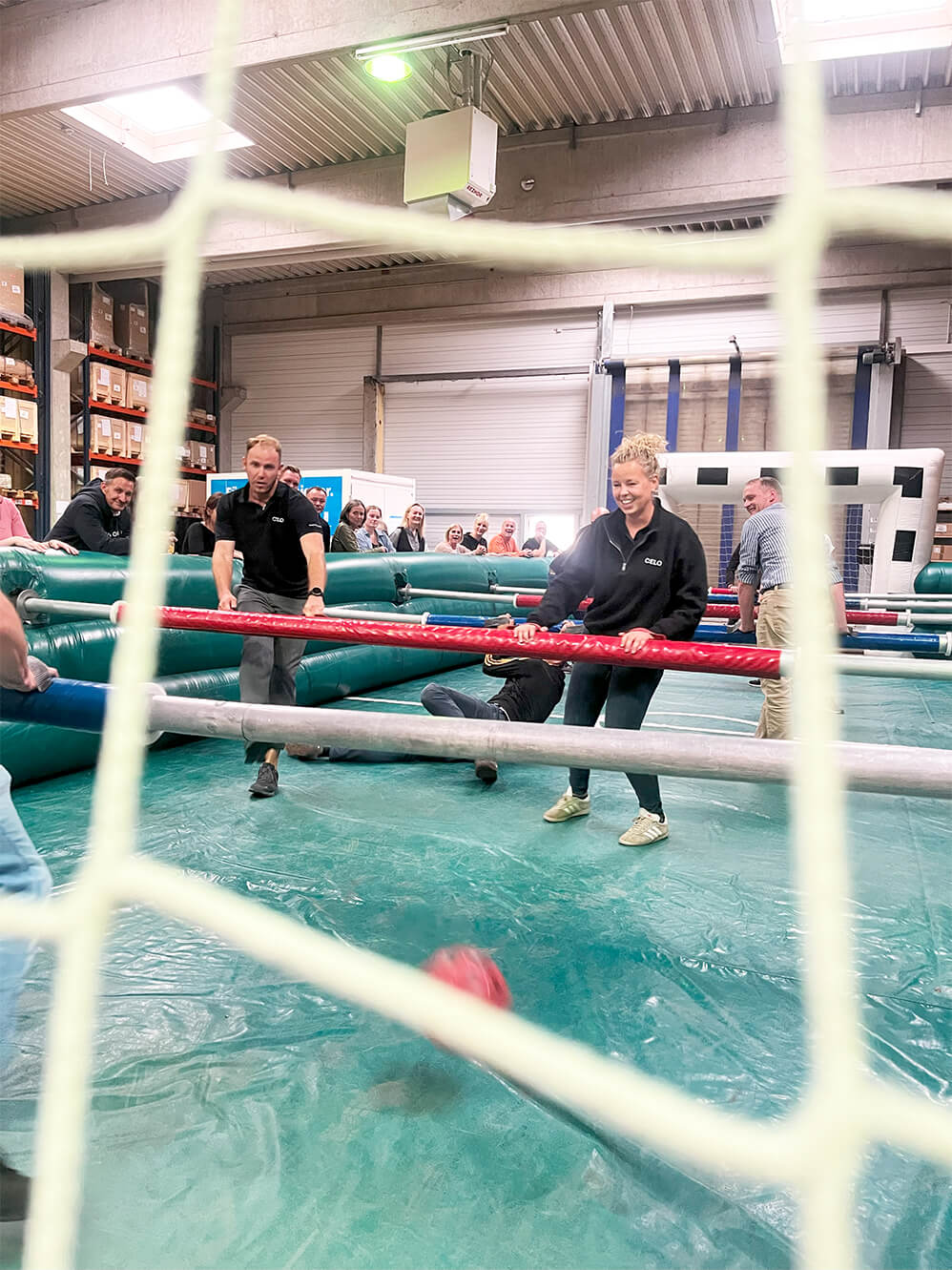 Acht bunt gemischte CELO-Teams standen bereit, um ihr Können unter Beweis zu stellen und eine tolle Gelegeheit, um die Kolleginnen und Kollegen von einer  neuen Seite kennenzulernen. Es war ein Kopf-an-Kopf-Rennen, bei dem Geschicklichkeit genauso gefragt war wie Teamwork, denn nur wer gut zusammenspielte, konnte den Weg ins Viertel- und Halbfinale schaffen. Die Zuschauer, die am Spielfeldrand kräftig anfeuerten, sorgten für eine ausgelassene Stimmung.