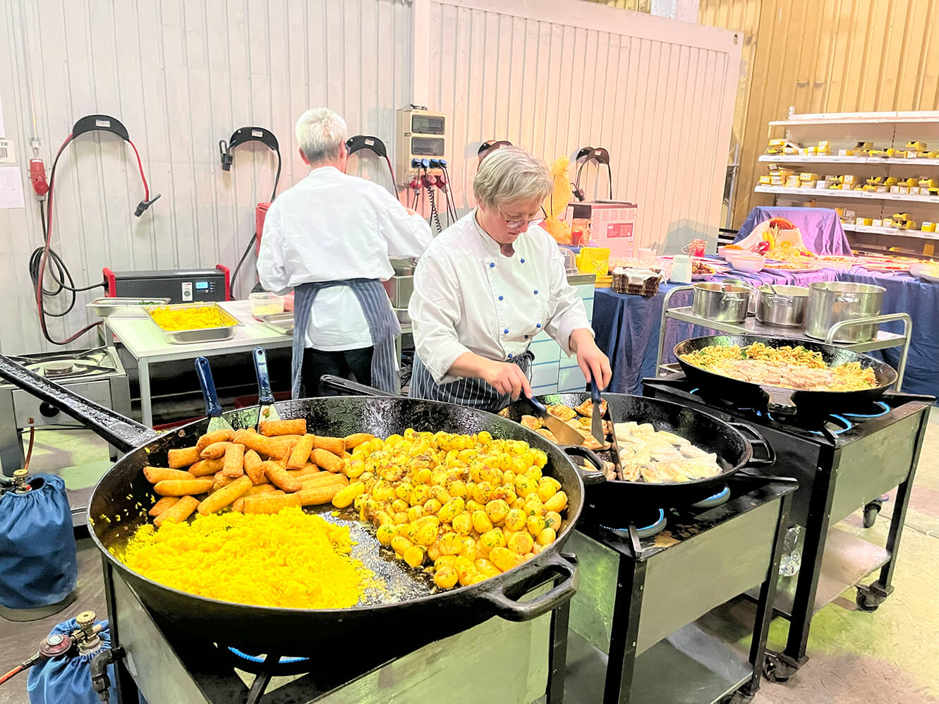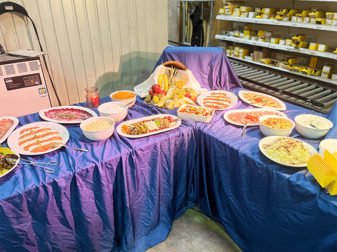 Nachdem wir uns beim Menschenkicker-Turnier und weiteren Spielestationen so richtig ausgepowert hatten, wartete schon der nächste Programmpunkt: Ein Catering der Extraklasse! Das Vorspeisen-Buffet ließ keine Wünsche offen, gefolgt von drei köstlichen Hauptgerichten, bei denen für jeden Geschmack etwas dabei war. Abgerundet wurde das Ganze durch eine süße Nachspeise, die für strahlende Gesichter sorgte. Dazu gab es natürlich erfrischende Getränke, die uns wieder Kraft für den weiteren Nachmittag gaben.