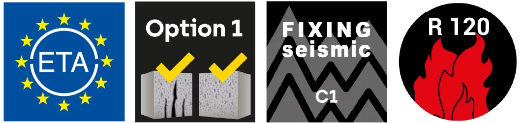 Mit ETA-Zulassung (Option 1), seismischer Prüfung und Feuerwiderstandsklasse R 120 ist sie die ideale Wahl für Montage, Befestigung und Abhängungen – schnell, sicher und wiederlösbar.